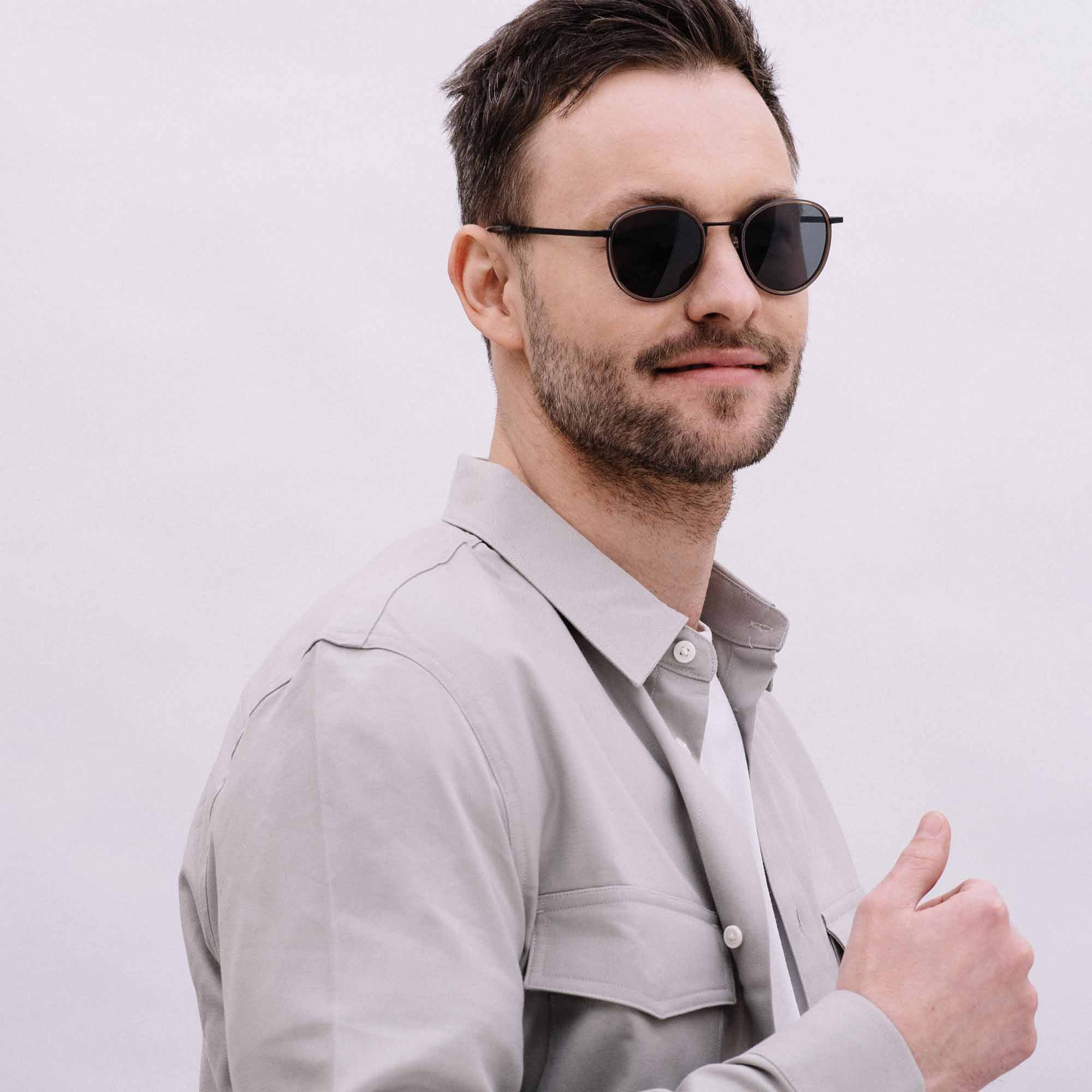 Der mattschwarze Edelstahlrahmen präsentiert einen filigranen Windsorring in braun-transparentem Look. Die grauen Premiumgläser bieten optimalen Schutz vor blendendem Licht und schädlichen UV-Strahlen und komplettieren den coolen Look dieser Sonnenbrille. Ada passt perfekt zu jedem Outfit im Alltag und fühlt sich auf schmalen bis mittelbreiten Gesichtern am wohlsten.
